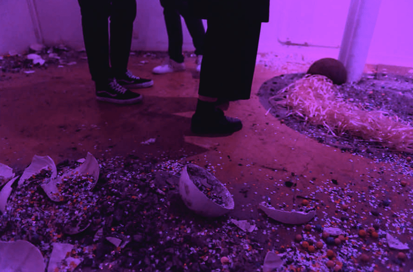 CREAM CORN, installation immersive, vaselines, paillettes, confettis, cendres, platre, bolduc, bassines, béton, 2018.