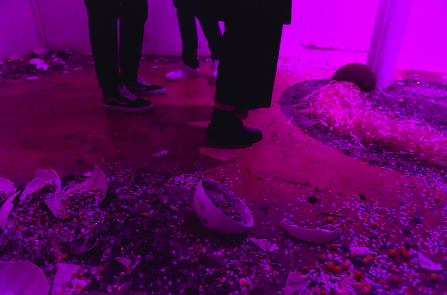CREAM CORN, installation immersive, vaselines, paillettes, confettis, cendres, platre, bolduc, bassines, béton, 2018.