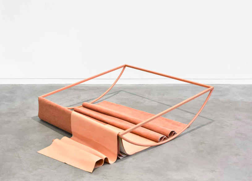 Lascives, Nonchalante, acier thermolaqué, cuir, velours, 24 x96 x 96 cm, 2016. ©photo: Rebecca Fanuele. Courtesy de la Galerie Éric Mouchet.